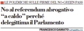 D’altronde, nel 2016 neppure il referendum confermativo -che è cosa diversa da quello abrogativo- sulla riforma costituzionale voluta dal governo di Matteo Renzi determinò col suo esito negativo la delegittimazione della maggioranza o delle Camere nel loro complesso, che avevano evitato lo scioglimento anticipato già all’inizio della nuova legislatura, tre anni prima, proprio per il programma di riforma costituzionale che si erano dati prima il governo di Enrico Letta e poi quello di Renzi.