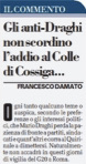 Il Fatto Quotidiano ha liquidato come un raduno di “banal grandi” quello presieduto da Draghi, avvolto dal vignettista Riccardo Mannelli in una nuvola -senza la maiuscola di Massimiliano Fuksas- premonitrice di “piogge e grandinate di fuffa”.