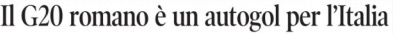 Il Giornale, ripeto, della famiglia Berlusconi ha titolato in prima pagina sul “brutto clima al G20”, giocando anche un po’ sul doppio senso, essendo proprio la questione climatica il tasto dolente del vertice per le resistenze opposte da grandi paesi come l’India e la Cina a ridurre l’inquinamento dell’atmosfera provocato dai loro sistemi industriali. Senza bisogno di ricorrere a doppi sensi un altro giornale affine al centrodestra, Libero, ha titolato addirittura sull’”autogol” che il G20 sarebbe per l’Italia che pure lo ospita e presiede con abilità ed efficacia riconosciute da tutti i partecipanti. Ai quali Draghi ha felicemente affiancato, nella foto emblematica dell’evento, i medici, gli infermieri e i ricercatori dell’ospedale romano Spallanzani, distintisi nella lotta alla pandemia. Che ha impedito a lungo anche incontri diretti fra i governanti.