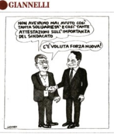 A compiere il miracolo di questo passaggio di Draghi, o della sua immagine, da un fronte all’altro sono stati quegli energumeni e geni alla rovescia di Forza Nuova, la formazione di estrema destra orgogliosamente responsabile dell’assalto di sabato scorso alla sede nazionale della Cgil. Che così si è procurata la solidarietà naturale, prima ancora che dovuta, anche del presidente del Consiglio, come ha fatto praticamente dire a Landini nella sua vignetta Emilio Giannelli sulla prima pagina del Corriere della Sera.