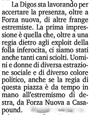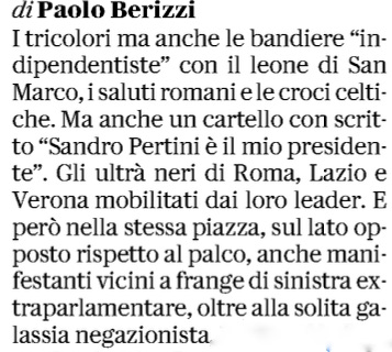 Invece i leghisti di Matteo Salvini e persino i forzisti di Silvio Berlusconi hanno preferito unirsi ai no, alle riserve e quant’altro di Giorgia Meloni. La quale, spalleggiata oggi su Libero da Vittorio Feltri, non a caso eletto nelle sue liste al Consiglio Comunale di Milano, protesta e persino sbraita contro il complotto permanente di cui la sua destra sarebbe vittima ma non si lascia scappare un’occasione -dico una- per fornire argomenti, pretesti e quant’altro agli avversari interessati alla sua emarginazione. Che gliene importa, a questo punto, di Forza Nuova, e delle modalità politiche e legislative con le quali si provvederà allo scioglimento di un movimento che pratica così sfacciatamente la violenza? Parlo di quella materiale, e non solo verbale praticata così pericolosamente anche dai grillini che il loro nuovo presidente Giuseppe Conte ha dovuto cercare di porvi rimedio con una modifica dello statuto delle 5 Stelle.