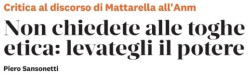 Oltre alla denuncia di questo mancato o perverso dialogo, pur senza addentrarsi in questi particolari per evidenti motivi di opportunità istituzionale, avendo per fortuna gli stessi processi provveduto a smascherarne i responsabili, Mattarella nella sua lettera ha sottolineato la necessità di una “rigenerazione etica e culturale” dei magistrati. Ma con ciò egli avrebbe compiuto quanto meno l’ingenuità -par di capire dalla “critica” formulata da Sansonetti- di scommettere sull’autoriforma di una magistratura mancante di morale e di cultura. Ci sarebbe bisogno non di un’autoriforma ma di una riforma, finalmente imposta ad una magistratura recalcitrante e “corporativa”, lamentata dallo stesso Mattarella nella sua lettera al presidente del sindacato delle toghe