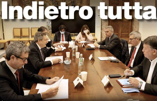 Ma Draghi -diversamente da qualche suo predecessore tutto politico come Mariano Rumor, che una cinquantina d’anni fa profittò di uno sciopero generale per dimettersi e tentare di ottenere dall’allora presidente della Repubblica Giuseppe Saragat uno scioglimento anticipato delle Camere negatogli invece con forza- non si lascerà né intimidire né farsi prendere dalla tentazione di una rinuncia clamorosa, magari funzionale a chissà quale progetto politico. Oltre il gesto di lasciare l’incontro con i sindacati prima della sua conclusione formale egli non andrà, per quanto il manifesto si sia azzardato col titolo di copertina “Indietro tutta”.