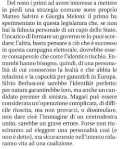 Alessandra Ghisleri, la sondaggista di cui Silvio Berlusconi si fida di più senza per questo comprometterne la credibilità sul versante opposto, si è tolta una bella soddisfazione: anche ai miei danni, diciamo così, avendole io non creduto quando in un salotto televisivo, qualche giorno prima dei ballottaggi del 17 ottobre, disse che le polemiche sui disordini di piazza misti di no pass e di “matrice” fascista dell’assalto alla sede nazionale della Cgil, non avrebbero influito sui risultati elettorali. Che sarebbero rimasti condizionati dai fattori e problemi locali.