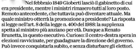 Sarebbe naturalmente secondo il solito Fatto Quotidiano, in sintonia con l’altrettanto solito Giuseppe Conte, un “golpetto contro la Carta”, cioè contro la Costituzione, ma non una novità ipocritamente ignorata da fior di politici e analisti scandalizzatisi per le dichiarazioni di Giorgetti. Il compianto Carlo Azeglio Ciampi raccontò ancora in vita di essersi sentito chiedere dall’allora presidente della Repubblica Oscar Luigi Scalfaro, nel 1993, di predisporre una nuova legge elettorale con la quale riportare gli italiani alle urne il più presto possibile. L’ex governatore della Banca d’Italia, pur scettico per la poca competenza al riguardo, si allineò per l’impegno assunto dallo stesso Scalfaro di farlo assistere nell’opera direttamente dagli “uffici del Quirinale”.
