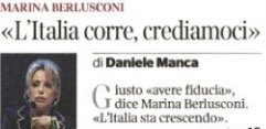 Nella rappresentazione dei danni derivanti dalla incertezza vera o presunta di Draghi il direttore del Giornale si è trovato involontariamente in conflitto paradossale con la figlia di Berlusconi, Marina. Che ha voluto dire la sua al Corriere della Sera su questo confuso o incerto passaggio politico assicurando che no, non c’è poi tanto da preoccuparsi perché “l’Italia corre” o, come preferite, “sta crescendo”. “Crediamoci”, ha raccomandato la signora.