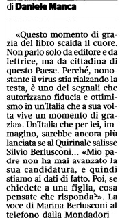 Di fronte a tanto chiasso politico e mediatico, chiamiamolo così, si rimane quanto meno sconcertati a rileggere ciò che non più tardi di ieri ha detto al Corriere della Sera la figlia di Berlusconi, Marina, a proposito della corsa del padre al Quirinale che starebbe così inguaiando Renzi. “Mio padre -ha detto la presidente di Mondadori e di Fininvest a Daniele Manca, che per telefono aveva sollevato il tema come un inciso nella prospettiva delle fortune che attendono l’Italia in genere- non ha mai avanzato la sua candidatura. E quindi stiamo ai dati di fatto”. E’ una parola, in questo strano paese che continua ad essere l’Italia, anche con uno come Mario Draghi a Palazzo Chigi, stare appunto ai dati di fatto.