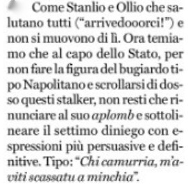 Nonostante tutto questo, pare che Mattarella dorma sonni tranquilli, disturbato al risveglio dal chiacchiericcio politico e mediatico riepilogato dai collaboratori nella rassegna quotidiana della stampa depositata già sul comodino. Buona lettura, presidente, anche per la raccolta ormai di domani.