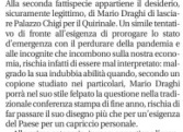 I sottintesi, e neppure tanto, della proroga dello stato di emergenza a fine marzo, in arrivo dal governo dopo l’accelerazione imposta -orologio alla mano- dal segretario del Pd Enrico Letta e subita, più che promossa, dal presidente del Consiglio, si evincono dalla somma o dal confronto, come preferite, dei titoli di apertura di due quotidiani di area del centrodestra: il Giornale della famiglia Berlusconi diretto da Augusto Minzolini e La Verità fondata e diretta da Maurizio Belpietro, generalmente più sensibile o pia vicina, sempre come preferite, alle posizioni di Matteo Salvini rispetto a quelle, pur rispettate, di Silvio Berlusconi.