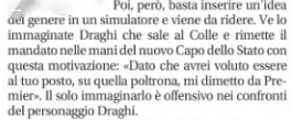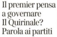 Il Giornale della famiglia Berlusconi si spinge invece a immaginare già la mancata elezione di Draghi per ammonirlo, in un editoriale del direttore Augusto Minzolini, a non farsi prendere dalla tentazione ritorsiva di mollare la guida del governo per lasciare tutti, ma proprio tutti, in braghe di tela.