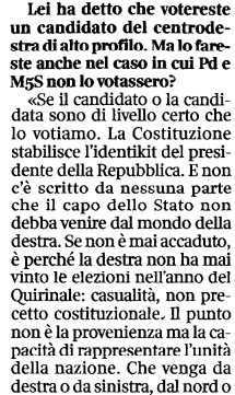 Ma quanto potrà contare paradossalmente anche Berlusconi su un Conte guastatore? Niente, a sentire Matteo Renzi, che dal Corriere della Sera ha rilanciato al Cavaliere la proposta di un ritiro dalla gara a favore di un altro candidato di centrodestra. Che il senatore di Scandicci sarebbe disposto a votare con i parlamentari di cui ancora dispone per garantire -franchi tiratori a parte- la maggioranza assoluta richiesta dal quarto scrutinio in poi. “Il punto -ha detto Renzi- non è la provenienza ma la capacità di rappresentare l’unità della nazione, che venga da destra o da sinistra, dal nord o dal sud”.