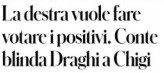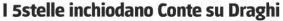 “Conte blinda Draghi a Chigi”, ha titolato in apertura Il Fatto Quotidiano, che ancora rimpiange l’ex presidente del Consiglio come uno statista pugnato alla schiena nell’ultima crisi. “I 5 Stelle inchiodano Conte su Draghi”, ha titolato da una sponda politica opposta Il Giornale della famiglia Berlusconi con una convergenza di interessi derivante dalla speranza dello stesso Berlusconi di rimanere in gioco nella corsa al Quirinale grazie alla divisione dei suoi avversari.
