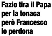 Il trattamento più cortese, pur in un sottofondo critico, è stato riservato a Papa Francesco da Libero con quel titolo su Fazio che cerca di “arruolarlo” e viene “perdonato”.