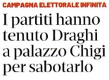 Altrettanto bene però farebbe il segretario piddino a riprendere finalmente le misure di quel “campo largo” preferito al “nuovo Ulivo” o altre formule e propostosi di creare con i grillini, pur non scambiando più per fortuna Giuseppe Conte, diversamente dall’imprudente Zingaretti, per il massimo punto di riferimento dei progressisti in Italia. Che è francamente un pò troppo non solo e non tanto per il percorso anche giudiziariamente accidentato della presidenza contiana del MoVimento 5 Stelle quanto per la crescente confusione, litigiosità e quant’altro di quella forza politica ormai gassosa, Che nelle precedenti elezioni politiche prese addirittura il posto di quella che era stata una volta la Dc non dico di Alcide De Gasperi, ma quanto meno di Amintore Fanfani e di Aldo Moro. Una forza, quella grillina, che ha tenuto in ostaggio la legislatura fino a quando al Quirinale, un anno fa, Sergio Mattarella non perse la pazienza, non rimosse praticamente Conte da Palazzo Chigi, facendo scrivere Marco Travaglio di un presunto “Conticidio”, e non vi mandò Mario Draghi prendendolo dalla Riserva, con la maiuscola, della Repubblica.