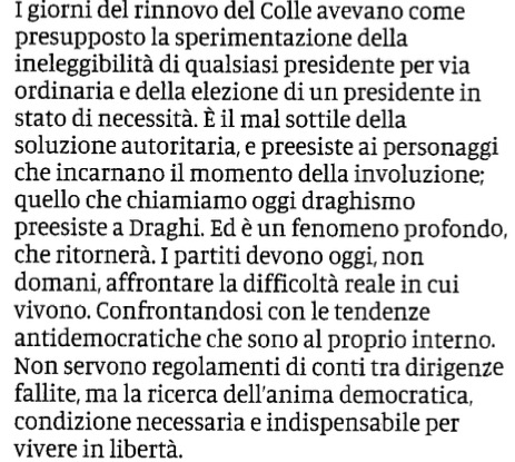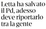 Fa bene anche Curzio Maltese nell’editoriale odierno su Domani a chiedere a Letta di “riportare tra la gente”, magari anche con un intervento del tipo di quello su Repubblica, il Pd che avrebbe “salvato” nell’ultimo turno di elezioni amministrative ereditato all’improvviso da un Nicola Zingaretti in fuga dalla segreteria del Nazareno, l’anno scorso.