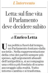 Reduce dal congresso di Azione di Carlo Calenda, e pur preso anche lui -penso- dalle preoccupazioni per la guerra che potrebbe scoppiare sul fronte orientale dell’Europa coinvolgendo anche gli interessi italiani, il segretario del Pd Enrico Letta ha preso carta e penna, o semplicemente smanettato sul suo computer, per un “intervento” su Repubblica in materia di fine vita, condividendone l’urgenza dopo l’ennesima figuraccia fatta dal Parlamento con la Corte Costituzionale. Che nel 2018, cioè quattro anni fa, aveva chiesto alle Camere di approvare una legge entro il 2019 che le risparmiasse un’altra intromissione in un processo penale come quella compiuta a favore di Marco Cappato per un suicidio assistito, variante umana dell’omicidio del consenziente. Niente. La Corte per non dovere di nuovo pronunciarsi in assenza della legge sollecitata ha dovuto dichiarare inammissibile un referendum chiesto sulla materia da un’infinità di elettori.