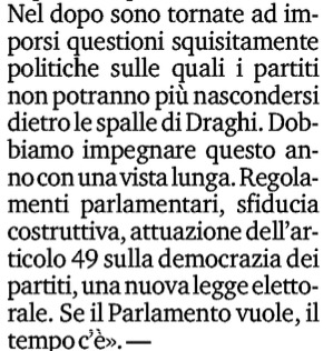 L’urgenza c’è tutta ed Enrico Letta ha fatto bene, per carità, a intervenire pur con ritardo anche lui, perché una sveglia ai suoi parlamentari, quanto meno, avrebbe potuto darla ben prima dell’astensione impostasi dai giudici costituzionali per inadempienza parlamentare.
