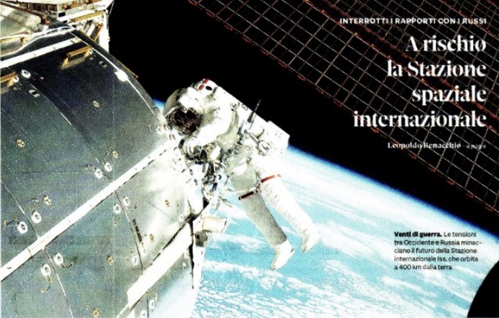 No. Il giornale della Confindustria ci ha proposto ancora più desolatamente, come vi spiegherò, la foto di copertina, chiamiamola così, della Stazione Spaziale Internazionale in orbita attorno alla terra, a circa 400 chilometri di distanza, da più di 20 anni in corsa a 27.600 chilometri l’ora e programmata per viaggiare sino al 2024. Ebbene, anch’essa è a rischio per effetto della guerra in Ucraina e dintorni, con i suoi oltre 100 metri di intelaiature, moduli e laboratori, e il suo equipaggio fra i due e i sette membri, alternati a scadenze naturalmente ben studiate, perché si sono “interrotti -dice il giornale- i rapporti con i russi”. Che sono troppo presi evidentemente dagli ultimi e prevalenti interessi di Putin e dei suoi generali per occuparsi da terra anche di questa stazione spaziale di cui peraltro possiedono i moduli condividendo il resto con le agenzie spaziali degli Stati Uniti, dell’Europa, del Giappone e del Canada, tutte interessate non solo ad esplorare lo spazio ma anche o soprattutto ad esperimenti di biologia chimica, fisiologica e fisica.