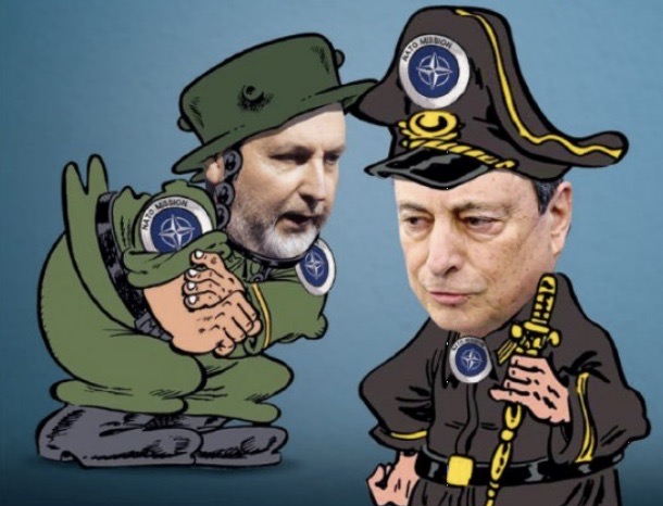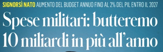 Qualche giorno fa in un fotomontaggio di prima pagina il presidente del Consiglio era in tenuta un pò francescana e un pò napoleonica, spalleggiato dal ministro della Difesa Lorenzo Guerini, entrambi contenti di avere appena aumentato le spese militari per “buttare 10 miliardi di euro in più all’anno”, sottraendoli in parte naturalmente al cosiddetto reddito di cittadinanza e simili. L’importante è dire “signorsì alla Nato” , per fortuna di Travaglio contrastati in piazza dai pacifisti, pur impegnati tuttavia a sfottere di più il segretario del Pd gridandogli “Letta mitraglietta”.