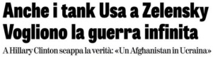 Detto o raccontato da destra, con una sintonia non nuova, questo commercio o traffico di armi che avrebbe preparato e alimenterebbe ancora il conflitto nel cuore della vecchia Europa è quello degli americani e degli altri paesi occidentali che , come l’Italia governata da Mario Draghi, sostengono la causa ucraina. “Anche i tank Usa a Zelensky. Vogliono la guerra infinita”, ha titolato La Verità di Maurizio Belpietro, rapida anche nel cogliere, denunciare e quant’altro ciò che è “scappato” a Hillary Clinton a proposito di ciò che gli atlantisti, chiamiamoli così, vorrebbero fare della terra messa a ferro e a fuoco da Putin, fra macerie e cadaveri abbandonati per strada: “Un Afghanistan in Ucraina”. Ma stavolta a tirare le fila non sarebbe Breznev dal Cremlino, fortunatamente morto e sepolto da tempo, né quello che nel frattempo ne ha ha preso il posto, cioè Putin, ma Joe Biden dalla Casa Bianca.