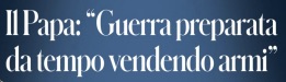 Non perché sia fissato o ossessionato da ciò che scrive e titola Il Fatto Quotidiano, quasi una nuova Lotta Continua, ma solo perché gli riconosco una natura tutta politica, il Papa dovrebbe riflettere -sant’uomo- sulla capacità che le sue parole pronunciate nella missione a Malta hanno avuto di essere tradotte così dal giornale di Marco Travaglio, a proposito del conflitto in Ucraina: “Guerra preparata da tempo vendendo le armi”.