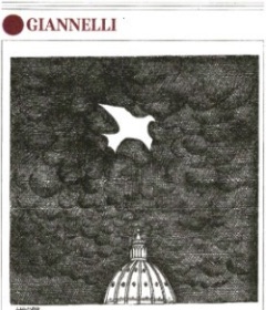La Pasqua di questo 2022 è tutta in quella colomba bianca che vola sotto le nuvole di fumo della guerra che sovrastano, nella felice vignetta di Emilio Giannelli sulla prima pagina proprio del Corriere della Sera, la cupola michelangiolesca della Basilica di San Pietro. Sotto le cui navate Papa Francesco registra attonito il vuoto nel quale cadono i suoi appelli a deporre le armi.