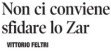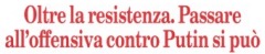 Un esempio di resa a Putin è quello che ha scritto su Libero Vittorio Feltri, che meglio non poteva sintetizzarsi col titolo in prima pagina che credo si sia dato da solo: “Non ci conviene sfidar lo Zar”, con la maiuscola. Che è l’opposto di quel che in rosso ha gridato, sempre in prima pagina, Il Foglio: “Oltre la resistenza. Passare all’offensiva contro Putin si può”. E non solo si deve, come dice ogni giorno da Kiev o da dov’altro è costretto a nascondersi sulla sua terra il presidente dell’Ucraina Zelensky.