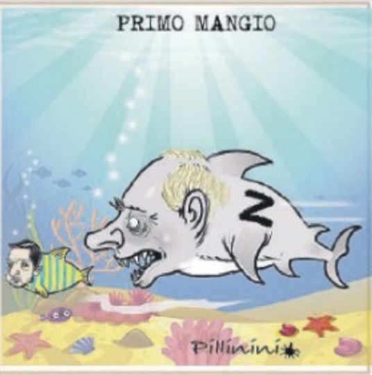 Per porre fine a questa “operazione”, che a chiamare guerra si rischia ancora la galera in Russia, il presidente Putin sembra intenzionato non a cessarla ma a dichiararla per quella che è. E a proseguirla con ancora più forza, cercando di mangiarsi ancora più Ucraina e accreditando la vignetta per niente sarcastica, a questo punto, di Nico Pillinini sulla prima pagina della Gazzetta del Mezzogiorno titolata “Primo mangio”, anziché Primo maggio. In essa lo squalo russo con tanto di zeta impressa addosso, come i carri armati di Putin, si accinge a divorare il pesce Zelensky.