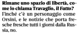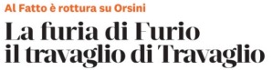 Intervistato poi dal Riformista, cui naturalmente non è parso vero inzuppare il pane in questa minestra dopo tutti gli insulti che riceve dal Fatto Quotidiano sulle problematiche della giustizia, Colombo ha rincarato la dose adombrando la rinuncia alla sua collaborazione con Travaglio. Che, nel difendere Orsini dalle sue critiche, pur precisando di non condividerne tutte le opinioni, aveva praticamente accusato Colombo di avere ecceduto nella polemica. Come se lui, Travaglio, sapesse contenersi quando parla e scrive di chi gli capita sotto tiro, storpiandogli per prima cosa il nome.
