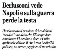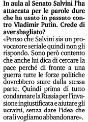 La prima tentazione, dicevo, è di parlare di questo, e non altro. Ma più attuale, ai fini della politica corrente, è invece l’abbaglio nel quale è incorso il segretario del Pd Enrico Letta tornando a indicare il maggiore pericolo per il governo Draghi nel pur criticabilissimo -per carità- Matteo Salvini, con le sue sparate putiniane e antieuropeiste ogni tanto spalleggiate nel centrodestra addirittura da Silvio Berlusconi. Il cui Giornale di famiglia oggi ha aperto gridando su tutta la prima pagina contro l’Unione Europea che “si butta a sinistra” solo perché continua a tenere d’occhio l’ingente debito pubblico italiano chiedendo il rispetto degli impegni assunti sulle riforme in cambio dei finanziamenti comunitari al piano di ripresa nazionale.