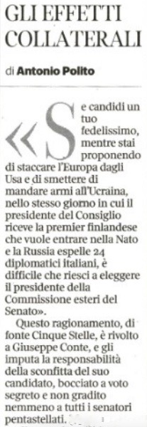 Enrico Letta non vede, o finge di non vedere, che non meno di Salvini, e persino -ripeto- di Berlusconi, è un pericolo per il governo Draghi per putinismo in tempo di guerra all’Ucraina e diffidenza verso l’Europa il MoVimento 5 Stelle, o quel che ne rimane. Con cui invece il segretario del Pd continua a inseguire il progetto di un campo più o meno largo. Non si accorge, poverino, o non vuole accorgersi, che ormai sta venendo meno a Draghi anche l’aiuto fornitogli da Beppe Grillo in persona nella formazione del suo governo. E se viene meno quello di Grillo, figuriamoci se Draghi potrà contare sul sostegno vero di Conte nella crescente campagna elettorale, in vista delle amministrative del 12 giugno e delle politiche dell’anno prossimo: un Conte peraltro già incapace di controllare i gruppi parlamentari dei quali, del resto, non fa neppure parte né come deputato né come senatore.