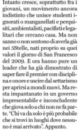Nel blog di Grillo, ora non più tanto personale per gli accordi di natura anche economica stretti con Conte, è appena uscito un post che ha fatto di nuovo sognare il solito Marco Travaglio, portandolo nell’editoriale odierno del Fatto Quotidiano a sollecitare Conte a fare uscire i pentastellati dal governo e della maggioranza. La quale secondo Grillo, copertosi dietro Paul Rulkens e persino Einstein, “è sempre in errore”. Ha invece sempre ragione, nella massa grigia indistinta, quell’omino rosso che protesta, “rompe con gli standard” e “va da solo” perché così “è più probabile -parola di Einstein- che si trovi in luoghi dove nessuno è mai arrivato”: prima della morte, aggiungerei, perché lì davvero arrivano tutti, prima o dopo.