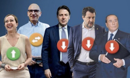 Rimosso con un fantomatico carro attrezzi della Protezione Civile il carro funebre del referendum, immaginando i cinque sui temi della giustizia accomunati a torto o a ragione in una sola cassa, del turno elettorale di domenica 12 giugno ci rimangono i risultati dei partiti misuratisi nel rinnovo delle amministrazioni comunali. Per una volta possiamo fidarci anche dei fotomontaggi e dei titoli del Fatto Quotidiano, uguale -pensate un pò- alla sintesi di Repubblica, che accomuna nella sconfitta, come dato essenziale o finale di almeno il primo turno del voto comunale, Matteo Salvini nel centrodestra e Giuseppe Conte nel centrosinistra. O “campo largo”, come preferisce ancora chiamarlo il segretario del Pd Enrico Letta con antica astuzia democristiana, cioè segretamente confortato dalle perdite che subisce il troppo ingombrante alleato.