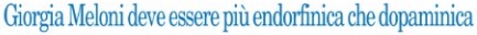 Se Travaglio dà consigli ai grillini, Giuliano Ferrara, sul Foglio ne dà alla sempre più emergente Giorgia Meloni nel centrodestra, ormai lanciata verso la candidatura a Palazzo Chigi in caso di sopravvivenza e vittoria elettorale della coalizione. L’ex ministra di Berlusconi deve imparare ad essere -le ha consigliato Ferrara- “più endorfinica che dopaminica”. Ma, fortunatamente impietosito dei suoi lettori, le ha raccomandato più terra terra, nello stesso titolo discorsivo, di “trasmettere anche serenità ed equilibrio”, visto ciò che grida nelle piazze italiane e straniere.