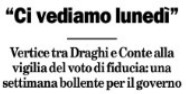 Dopo le smentite quasi congiunte di Mario Draghi e di Beppe Grillo alla tentazione praticamente loro attribuita di “farlo fuori” dalla presidenza delle 5 Stelle e l’assicurazione dello stesso Draghi che il governo non sopravviverebbe ad un’uscita di quel che resta dell’omonimo movimento, per quanto non più di maggioranza relativa per la scissione consumata dal ministro degli Esteri Luigi Di Maio, doveva essere un incontro di chiarimento e di riconciliazione quello concordato fra il presidente del Consiglio e il predecessore Giuseppe Conte per lunedì pomeriggio. Invece lo stesso Conte, come hanno titolato praticamente un pò tutti i giornali, ha voluto avvertire che il risentimento, anche a costo di sembrare a questo punto più personale che politico, non gli è ancora passato.