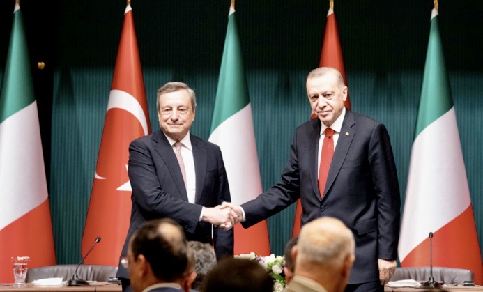 Certo è che sempre sotto le cinque stelle, e sempre sul giornale che ne riflette di più gli umori più profondi, il presidente del Consiglio in carica viene rappresentato come peggio non si potrebbe. La sua missione in Turchia, con mezzo governo al seguito, per una serie di accordi con Erdogan, il “dittatore” lamentato l’anno scorso dallo stesso Draghi con l’avvertenza realistica di una cooperazione obbligatoria, ha fatto scrivere a Marco Travaglio di “scena vomitevole”, di “mani insanguinate” strette con troppa disinvoltura e della “speranza che lor signori non oseranno mai più tenere lezioni su aggressori e aggrediti, liberaldemocrazie e dittature, invii di armi per difendere i valori occidentali, il diritto internazionale, autodeterminazione dei popoli e altri capolavori di ipocrisia”.