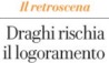 “Draghi rischia il logoramento”, titolava ieri Repubblica richiamando in prima pagina un articolo di “retroscena” sulla situazione politica e, più in particolare, sulle condizioni in cui si trova il presidente del Consiglio fra annunci, minacce, manovre di crisi prevalentemente attribuite alle tensioni che percorrono il MoVimento 5 Stelle dopo la scissione di Luigi Di Maio, ma onestamente evidenti anche fra i leghisti, ormai superati nel centrodestra dai fratelli d’Italia di Giorgia Meloni. Che guadagna voti soprattutto ai danni del partito di Matteo Salvini.