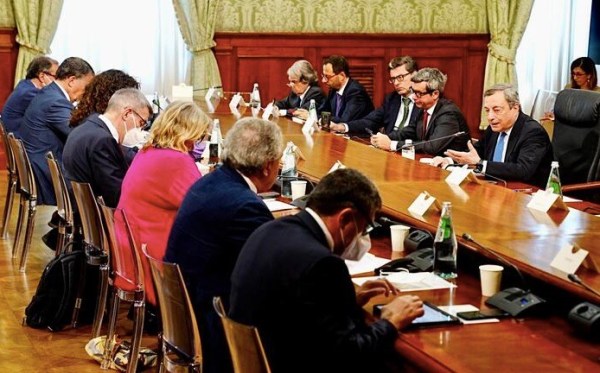 Anche l’incontro di Mario Draghi e dei suoi ministri con i sindacati per “il cantiere” del salario minimo e del taglio al cuneo fiscale, come lo ha chiamato il giornale della Confindustria 24 Ore, o il “patto anticrisi”, secondo Avvenire, il quotidiano dei vescovi italiani, ha risentito del clima politico di provvisorietà, instabilità e quant’altro creato dalle condizioni della maggioranza. Dove Giuseppe Conte e Matteo Salvini si inseguono nelle minacce e negli “ultimatum” lamentati dal presidente del Consiglio. Ma Conte primeggia per il caos del MoVimento 5 Stelle aggravatosi con la scissione, peraltro non ancora completa, di Luigi Di Maio.