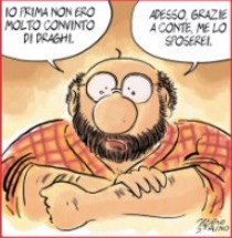 Non si sa, a questo punto, se il governo sarà ancora al suo posto, o comunque in condizioni di “fare”, che sono le uniche accettate da Draghi, per un successivo incontro, verso la fine del mese, programmato con i sindacati prima di un altro, corposo decreto di contenimento della crisi sociale. Ma se non avverrà, sarà ben difficile a Conte, e a ciò che sarà rimasto del suo movimento, scaricarne la responsabilità su altri: a cominciare dal “Draghi sottovuoto” gridato dal giornale che più rimpiange e sostiene l’ex presidente del Consiglio. Che è naturalmente Il Fatto Quotidiano, spesosi a rappresentare così l’incontro con i segretari dei sindacati a Palazzo Chigi: “La proposta che non c’è del governo che non c’è”, dal quale quindi i grillini dovrebbero affrettarsi ad uscire, e non limitarsi a negargli la fiducia o a non votarne i provvedimenti. Non è affatto escluso che Conte soddisfi alla fine, pur in un percorso assai tortuoso, quest’attesa spasmodica dei suoi estimatori. Che hanno riempito le tasche, diciamo così, anche ad un vecchio giornalista e militante di sinistra come Sergio Staino, ex direttore dell’Unità, sbottato sulla prima pagina della Stampa a dire nella sua vignetta: “Io prima non ero molto convinto di Draghi. Adesso, grazie a Conte, me lo sposerei”.