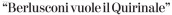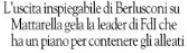 Più sobrio, graficamente e insolitamente, ma meno allusivo è il titolo dedicato alla vicenda dal Fatto Quotidiano in un richiamo di prima pagina: B. presidenzialista “licenzia” Mattarella. Il quale da Alghero, dove è in vacanza, è rimasto rigorosamente in silenzio, almeno sino al momento in cui scrivo, probabilmente compiaciuto della difesa, stima e quant’altro confermatagli da gran parte dei giornali e delle forze politiche, in fondo persino nel centrodestra, dopo la sortita berlusconiana. “L’uscita inspiegabile di Berlusconi su Mattarella gela la leader di Fdi che ha un piano per contenere gli alleati”, ha spiegato in un titolo di prima pagina Il Foglio riferendosi a Giorgia Meloni, quasi come la prima danneggiata dall’ex presidente del Consiglio.