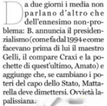 Come se non bastassero quelli già prevedibili, direi scontati, si sono aggiunti in questa disgraziata campagna elettorale gli inconvenienti improvvisati, come la gaffe di Silvio Berlusconi – con quel presidenzialismo contrapposto, volente o volente, ad un presidente della Repubblica che il suo partito ha peraltro contribuito a rieleggere, pur tentando in un primo momento la scalata al Quirinale- e l’abuso che ne stanno facendo -va detto anche questo- gli avversari demonizzando col Cavaliere anche la riforma presidenzialista. Di cui Marco Travaglio, per esempio, sul Fatto Quotidiano ha attribuito la paternità al “maestro Gelli”, prima ancora che al “compare Craxi” e alla sua “pochette Amato”, ora presidente della Corte Costituzionale, dimenticando il presidenzialismo sostenuto all’Assemblea Costituente dall’antifascista Piero Calamandrei.