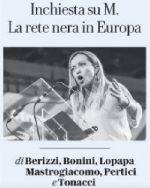 La tentazione, dicevo, di seguire la caccia del manifesto agli “spostati” è forte. Ma ancor più forte, scusatemi, è diventato alla fine il fastidio procuratomi dalla prima pagina di Repubblica con quel richiamo dell’ennesima puntata di una “inchiesta su M.”. M.come Mussolini, naturalmente, pur trattandosi più modestamente, per fortuna, di Meloni. Giorgia Meloni, così preoccupante per “la rete nera in Europa” che la sosterrebbe da meritarsi il lavoro d’indagine e di scrittura di ben sei giornalisti: Berizzi, Bonini, Lopapa, Mastrogiacomo, Pertici e Tonacci, nello stesso ordine alfabetico proposto dal loro quotidiano.