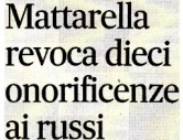 Una, cui dò la precedenza perché proveniente dal Quirinale e attinente le competenze del Capo dello Stato, è la revoca di dieci onorificenze concesse dalla Repubblica d’Italia a russi che non le hanno più meritate quando hanno condiviso o persino partecipato a loro modo, non necessariamente armato, all’aggressione all’Ucraina. Mi direte che il gesto è più simbolico che altro, ma non sono d’accordo, anche perché non è il primo adottato dal Presidente della Repubblica. Che non a caso, del resto, proprio qualche giorno fa ha voluto ribadire il carattere “scellerato” dell’azione che la Russia sta continuando ad esercitare contro il libero paese confinante.