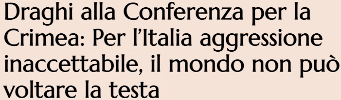 L’altra notizia è la partecipazione del presidente del Consiglio Mario Draghi, pur da remoto in questi tempi di perdurante pandemia, alla Conferenza per la Crimea nel 31.mo anniversario dell’indipendenza dell’Ucraina, e sesto mese della guerra scatenata contro di essa dalla Russia. Questa ancora in corso e, prima ancora, l’annessione della Crimea, deplorata anche da Erdogan, sono cose inaccettabili, di fronte alle quali -ha detto Draghi- “il mondo non può voltare la testa”.