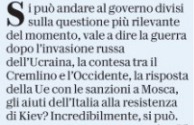 Della conferenza stampa del presidente del Consiglio ancora fresca d’inchiostro, diciamo così, per la vasta eco giornalistica che ha avuto con l’allusione ai “pupazzi prezzolati” di Putin anche in Italia, il leader della Lega si è vantato di non avere avuto la curiosità di sentire una parola. Ed ha sbrigativamente replicato, essendosi evidentemente riconosciuto in quella generica allusione, invitando il presidente del Consiglio a cercare “non i pupazzi ma i soldi” -molti di più di quelli stanziati sinora- per proteggere gli italiani dalle bollette della luce e del gas aumentate anche per le reazioni di Putin alle sanzioni, cui partecipiamo pure noi, per la guerra all’Ucraina.
