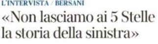 Il buon Pier Luigi Bersani, sempre prodigo di immagini paradossali, come le bambole da pettinare, i giaguari da smacchiare, le mucche da allontanare dai corridoi e via scherzando, se n’è appena uscito con una intervista al Corriere della Sera in cui chiede, disperato, a compagni e amici di “non lasciare ai 5 Stelle la storia della sinistra”. Che dovrebbe significare non inseguirli, non mettersi al loro servizio, non farsi commissariare. Ma ciò è proprio quello che anche Bersani chiede, in coincidenza peraltro con una intervista di Massimo D’Alema al Fatto Quotidiano, sostenendo il recupero del rapporto con un Conte indisponibile a trattare con l’attuale gruppo dirigente del Nazareno.