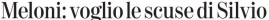 Ma Giorgia Meloni, dichiaratamente orgogliosa di non essere “ricattabile” da Berlusconi o da altri, e comunque ben viva e operativa, non come quella mosca schiacciata recentemente dall’ex presidente del Consiglio in diretta, mentre parlava davanti ad una telecamera, non risulta tentata, almeno al momento, da qualche iniziativa di chiarimento, riappacificazione e simili. Anzi, alla Stampa risulta che, ancora offesa da quei giudizi esposti come “pizzini”, la leader della destra voglia “le scuse di Silvio”. Ma scuse vere, non finte come quelle che, per esempio, vengono espresse in qualche intervista in risposta a domande più o meno di comodo. Meno intransigente è tuttavia la Meloni descritta dal Corriere della Sera.