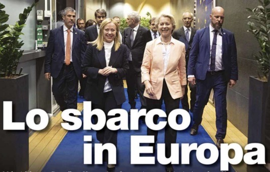 Giorgia Meloni dev’essere arrivata ieri a Bruxelles- o sbarcata come nel titolo del manifesto sovrapposto alla foto con la presidente della Commissione europea Ursula von der Layen- abbastanza in apprensione se ha chiuso la trasferta compiacendosi di aver saputo dimostrare di essere una terrestre, non la marziana che temeva di essere apparsa a distanza. Sotto sotto, a dispetto di una campagna elettorale esplosa a Milano con quel grido contro “la pacchia” di una Unione Europea sostanzialmente al guinzaglio degli interessi tedeschi, la premier italiana deve essere arrivata a Bruxelles temendo che la pacchia stesse finendo o fosse finita per lei, come nel titolo dedicatole oggi dal Foglio.