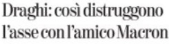In effetti Draghi e Macron hanno costituito nei mesi scorsi una coppia politica affiatatissima, non a caso firmatari di un patto fra Italia e Francia al Quirinale. Che si era sviluppato a tal punto da incrinare davvero il tradizionale, lungo asse preferenziale fra Parigi e Berlino nell’Unione Europea.