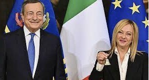 In un sondaggio di Demos ancora fresco di stampa l’ex presidente del Consiglio Mario Draghi, 75 anni compiuti il 3 settembre scorso, quando era ancora a Palazzo Chigi, quasi irriconoscibile ora nella sua semplicità di passante ripreso davanti al recinto di un cantiere, è salito di otto punti in un mese nella graduatoria del gradimento popolare: in particolare, dal 63 al 71 per cento. Lo segue, distanziata di 12 punti, due in più rispetto a ottobre, la donna -prima assoluta alla guida di un governo italiano- che ne raccolse la successione, e la campanella d’argento del Consiglio dei Ministri, in una cerimonia improntata alla massima cordialità, e continuità politica. Eppure al governo Draghi la leader della destra italiana, diversamente dagli alleati Silvio Berlusconi e Matteo Salvini, si era opposta per tutta la sua durata, nella scorsa legislatura, fatta eccezione per la politica estera, specie dopo l’aggressione russa all’Ucraina.